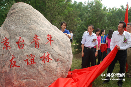 7月17日上午,“京臺青年友誼林”揭幕儀式在北京奧林匹克公園舉行,海協會會長陳云林為友誼林紀念石碑揭幕。(中國臺灣網 劉瑩 攝)