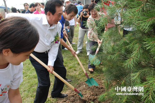 海協會會長陳云林和臺灣師生共同為“京臺青年友誼林”植下了象征兩岸友誼地久天長的松樹。(中國臺灣網 于斯文 攝)