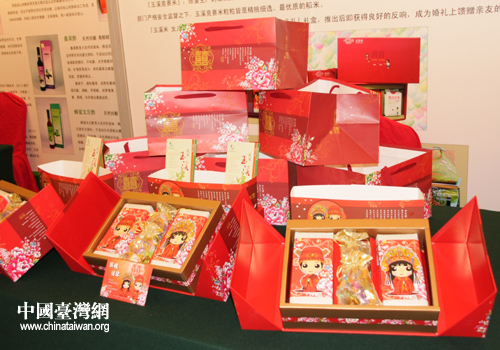 此次活動共吸引10家臺灣農會,展出了具有臺灣特色的20余種農產品。既有新鮮的芒果、蜜汁紅豆和蛋奶制品,還有受女性歡迎的玫瑰酒、玫瑰醋,尤為吸引人的是作為訂婚時的禮品米和印有“金木水火土”的五行大米,吸引了眾多嘉賓的眼球。