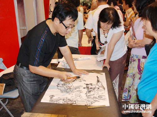 河北省知名畫家王立明現場作畫。(圖片來源:河北省臺辦)