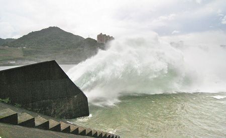 “凡亞比”臺風風強雨大,造成高雄市區積水嚴重,汪洋一片。 來源:臺灣《中國時報》