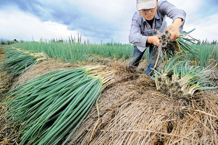 宜蘭縣的蔥農在臺風登陸前趕緊搶收,深怕心血泡湯。來源:臺灣《中國時報》