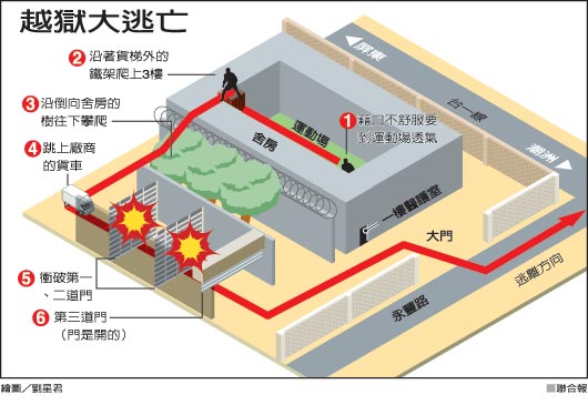 通緝犯越獄示意圖。(圖片來源:臺灣《聯合報》)
