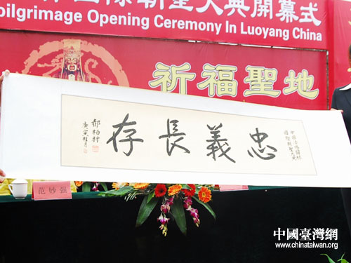 親民黨主席宋楚瑜賀詞:忠義傳家。圖片來源:洛陽市臺辦