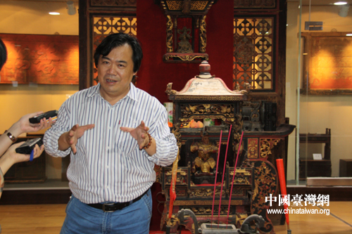 客家民俗博物館館長(zhǎng)陶曉俊接受記者采訪(中國(guó)臺(tái)灣網(wǎng) 陳寧 攝)