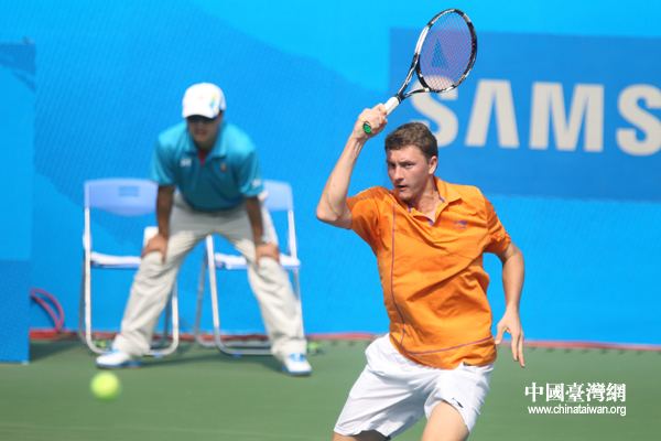 烏茲別克斯坦選手陣丹尼斯·伊斯托明回球。(中國臺灣網 鐘寶華 攝)