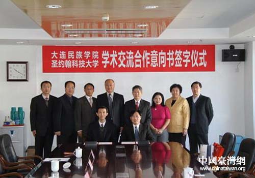 中國臺灣網(wǎng)11月24日大連消息 日前,臺灣圣約翰科技大學(xué)副校長林嘉洤教授一行來到遼寧省大連民族學(xué)院訪問,并正式簽署了兩校學(xué)術(shù)交流合作意向書。