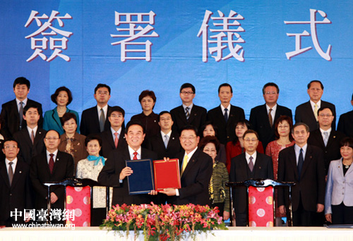 中國臺灣網12月21日臺北消息 兩岸兩會領導人第六次會談21日在臺北舉行。經過一個上午的會談,當日下午2點30分,海協會會長陳云林和海基會董事長江丙坤正式簽署《海峽兩岸醫藥衛生合作協議》。