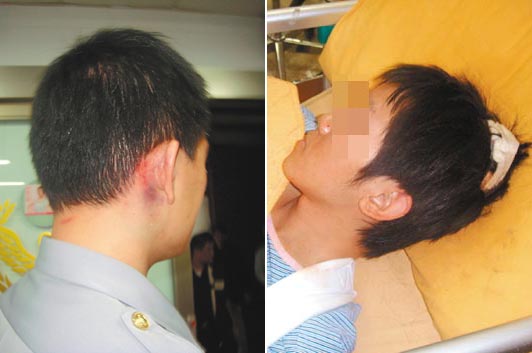 李姓交警(左)與陳姓協警(右)被打傷。圖片來源:臺灣《聯合報》