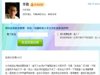 李戡在微博上表示:“我來北大讀書,下場就像個臺灣通緝要犯!眻D片來源:臺灣“今日新聞網”