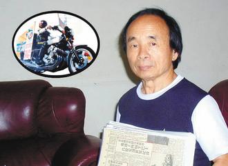 67歲的呂慶安,1965年曾在24小時內完成摩托車環島而名聞全臺,后投入摩托車特技表演,組成雷虎摩托車競技隊,在各縣市展現摩托車特技,贏得“飛車大王”稱呼。