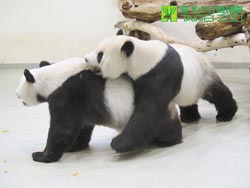 趙明杰說,團(tuán)團(tuán)與圓圓一入洞房即發(fā)揮本能,團(tuán)團(tuán)不斷對圓圓咬尾、咬臀、追逐、爬跨,最后成功騎上圓圓,表現(xiàn)算是不錯了;團(tuán)團(tuán)對圓圓咬著不放,圓圓被咬久了也會痛,就這樣拖著120多公斤的團(tuán)團(tuán),也很辛苦。
