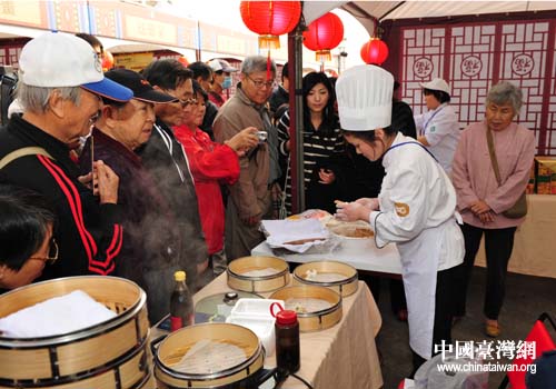 都一處燒麥展位前人頭攢動,地道的北京特色吃食讓臺灣民眾贊不絕口(圖片來源:北京市臺辦)