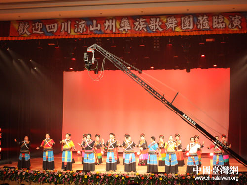 臺灣中天電視臺在苗栗縣對演出進行實況轉播錄制。圖片來源:四川省臺辦