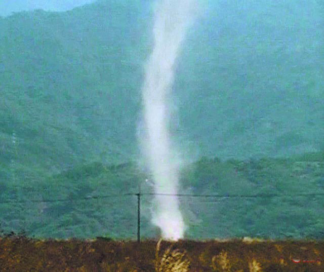 中國臺灣網3月3日消息 據臺灣媒體報道,出現在沙漠中的陸上龍卷風竟然在臺灣屏東縣發生。日前,屏東一男子開車行經一處農地,他先看到塵土飛揚,后來驚見兩道半徑逾5米的龍卷風,并逐漸靠攏,30秒后結合在一起往南移動,約10多層樓高。約5分鐘后,龍卷風離開,農地才歸于平靜。