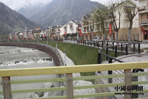 在廢墟上新建的映秀鎮背山依水,風光秀麗(中國臺灣網 蕪同 攝)