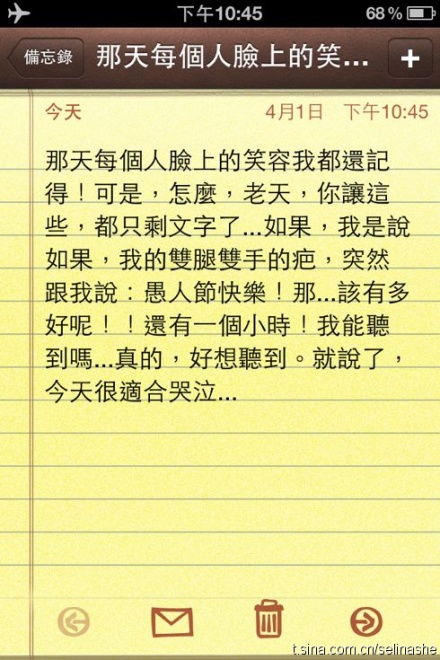 Selina昨日深夜發(fā)文。圖片來(lái)自Selina微博