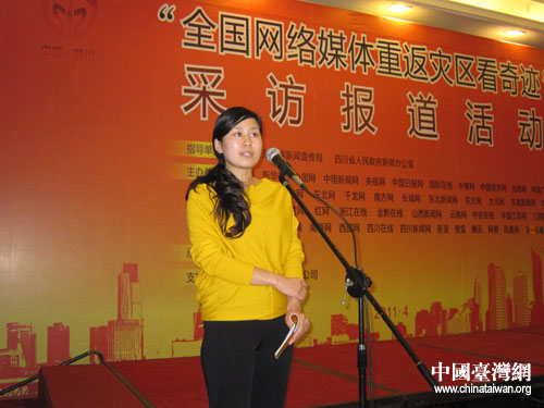 網(wǎng)絡(luò)媒體行記者發(fā)表5天來走訪災(zāi)區(qū)的感言。(中國臺灣網(wǎng) 朱毅 攝)