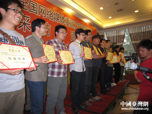 獲獎記者上臺領(lǐng)獎。(中國臺灣網(wǎng) 朱毅 攝)