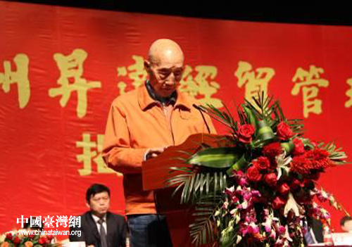 鄭州升達經貿管理學院創始人、臺灣杰出教育家王廣亞在慶典儀式上致辭(圖片來源:河南省臺辦)