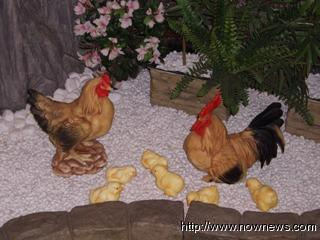 蔡英文昨日拜會(huì)呂秀蓮,呂從昔日的嚴(yán)厲批評(píng)轉(zhuǎn)為極盡吹捧。呂指著她辦公室大門處的一對(duì)帶著小雞的公雞和母雞稱,母雞看起來(lái)比公雞還要“雄糾糾、氣昂昂”,這“寓涵天機(jī)”。圖片來(lái)源:臺(tái)灣“今日新聞網(wǎng)”
