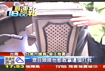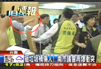 中國臺灣網5月12日消息 據臺灣TVBS電視臺報道,臺南市議會今(12)日爆發沖突。因對市府總預算的審查方式意見不合,無黨籍議員曾順良投擲垃圾筒砸傷民進黨總召曾王雅云,這招致其它民進黨議員的極大不滿,險些群毆曾順良。