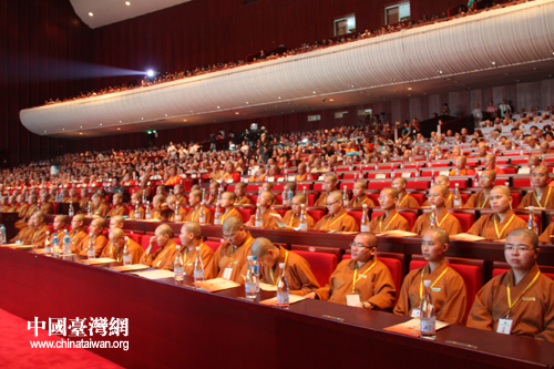 “第三屆海峽論壇·閩臺佛教文化交流活動周”9日晚間在福州開幕,閩臺兩地的諸山長老、大德,以及國家宗教局、福建省、福州市有關領導,與兩岸千余名僧眾一同參加了當晚舉行的開幕式。(中國臺灣網 楊麗 攝)