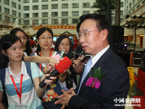 國務院臺灣事務辦公室主任助理李亞飛接受記者采訪。(中國臺灣網 于斯文 攝)
