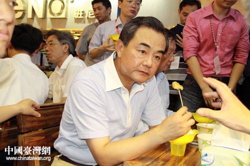 6月12日下午,正在廈門出席第三屆海峽論壇的國(guó)務(wù)院臺(tái)辦主任王毅參觀了在廈門市中山路舉行的臺(tái)灣特色廟會(huì),與參展的臺(tái)灣民眾親切交流,體驗(yàn)富有特色的臺(tái)灣廟會(huì),品嘗原汁原味的臺(tái)灣小吃。(中國(guó)臺(tái)灣網(wǎng) 王偉 攝)