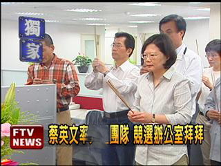 蔡英文率領幕僚在準備開張的競選辦公室上香祈福。圖片來源:臺灣民視新聞臺