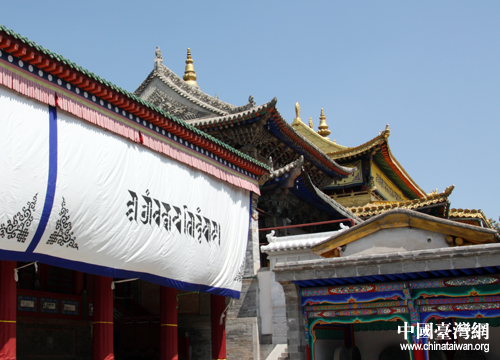 塔爾寺大金瓦殿一角,屋頂為黃金制成。(中國臺灣網(wǎng) 楊云濤 攝)