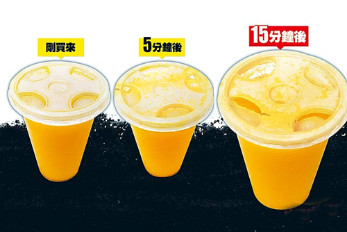 對于柳橙汁溶解杯蓋問題,果汁店業(yè)者表示,先前曾接獲顧客反映,購買的柳橙汁與檸檬汁會出現杯蓋溶解情形,曾向制造商反映但沒有解決,且杯子沒問題,更換其他杯蓋不合用,“只能請客人趕快喝掉!”