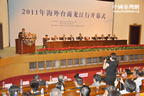 中國(guó)臺(tái)灣網(wǎng)8月9日哈爾濱消息 今天上午,“2011海外臺(tái)商龍江行”活動(dòng)在哈爾濱市隆重拉開(kāi)帷幕。國(guó)務(wù)院臺(tái)辦副主任孫亞夫、黑龍江省人民政府副省長(zhǎng)孫堯出席開(kāi)幕式并致辭。來(lái)自美國(guó)、加拿大、德國(guó)、英國(guó)、日本、泰國(guó)等20個(gè)國(guó)家近180名海外臺(tái)商、海外臺(tái)商團(tuán)體負(fù)責(zé)人應(yīng)邀參加此次活動(dòng)。
