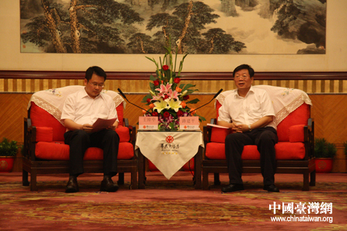 9月3日下午,中共湖南省委常委、省委宣傳部部長路建平在長沙華天大酒店會見了以臺灣旺旺中時文化傳媒公司總經理王綽中為領隊的第八屆海峽兩岸媒體湖南聯合采訪團成員。(中國臺灣網 王怡然 攝)