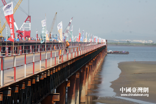 在建中的鴨綠江界河公路大橋。(中國臺灣網(wǎng) 馬迪 攝)
