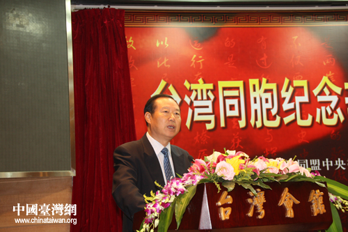 海峽兩岸關(guān)系協(xié)會(huì)副會(huì)長(zhǎng)王在希在座談會(huì)上致辭。(中國(guó)臺(tái)灣網(wǎng) 楊麗 攝)