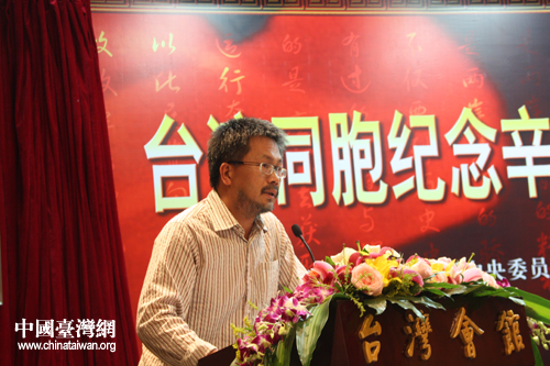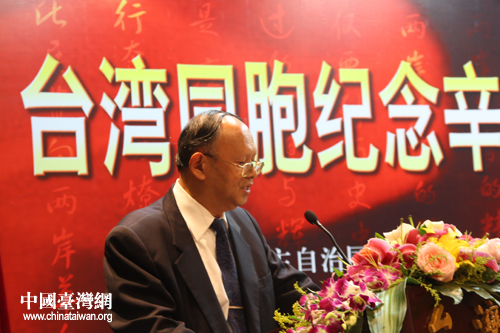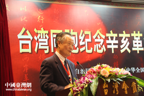 臺灣抗日志士親屬協進會顧問、臺灣中國統一聯盟文宣部長戚嘉林在座談會上發言。(中國臺灣網 楊麗 攝)