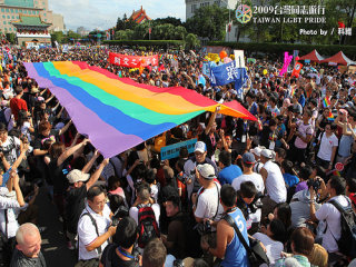 亞洲規模最大的同性戀游行,29日在臺北凱達格蘭大道上盛大登場,許多臺灣民眾也一同參加。 (圖片來源于臺灣媒體)