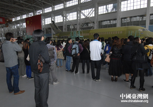 參觀我國自行設計制造的大型民用客機(上海市臺辦 葛鳳章 攝)