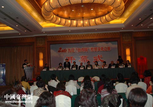 12月7日,2011九江“臺灣周”經貿文化之旅開幕。江西省臺辦主任閻鋼軍、江西省臺辦副主任簡立明,臺灣國民黨智庫永續發展組召集人陳世圯以及來自寶島臺灣的眾多女企業家100余人參加。