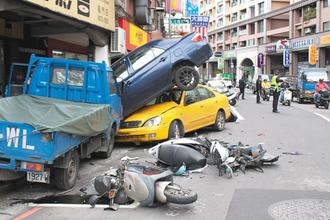 中國(guó)臺(tái)灣網(wǎng)12月17日消息 據(jù)臺(tái)灣《聯(lián)合報(bào)》,男子陳俊隆16日拉貨經(jīng)過(guò)新北市一地段時(shí),可能誤將油門(mén)當(dāng)剎車(chē)踩下,車(chē)子猛往左前方逆向沖去,先撞擊摩托車(chē)上的楊姓女子,再撞上停在路邊的2輛汽車(chē)和5輛摩托車(chē),楊女經(jīng)送醫(yī)急救不治。