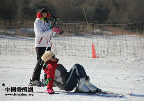 冬令營成員在滑雪場嬉戲玩耍。(圖片來源:沈陽市臺辦)