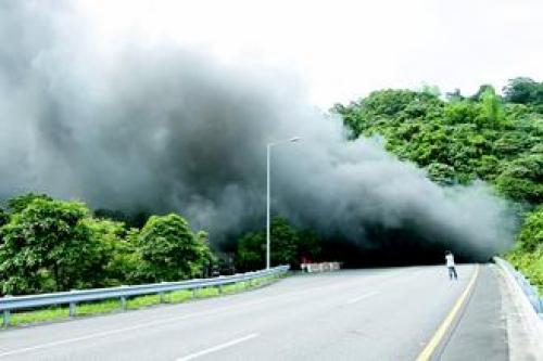 雪山隧道昨天發(fā)生火燒車事故。(圖片來(lái)源于:臺(tái)灣《聯(lián)合報(bào)》)