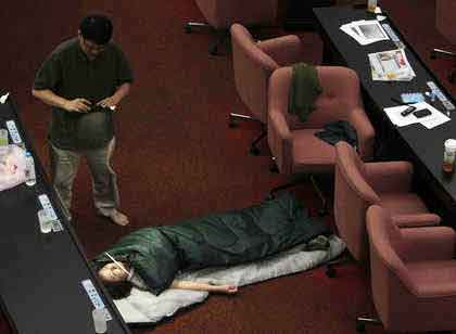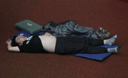 段宜康則自備露營(yíng)專用的睡墊和枕頭,但熟睡后踢被,還露出一大截肚子,也全被民進(jìn)黨內(nèi)同志們拍下照片。(中國(guó)臺(tái)灣網(wǎng) 劉海偉)