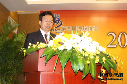 中國(guó)僑聯(lián)副主席李卓彬在四屆海峽論壇·兩岸僑聯(lián)和平發(fā)展論壇上致辭。(中國(guó)臺(tái)灣網(wǎng) 張潔 攝)