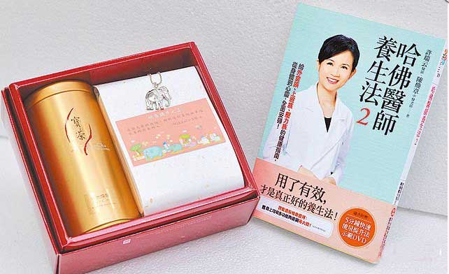 小S送雙滿月禮盒,內含小姑賣的茶葉禮盒和大姑出的養生書。圖片來自臺媒 第1頁第2頁第3頁