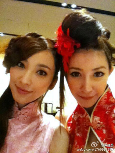 吳佩慈(左)、許維恩(右)姐妹撞臉。(圖片來自新浪微博)