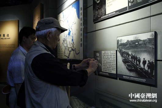 來自臺灣的畫家何照衢老先生一邊看一邊記錄,他對這段歷史感到動容。(中國臺灣網 芮益芳 攝)