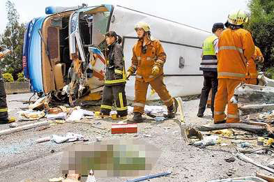 7日,哈爾濱教師旅行團(tuán)在臺發(fā)生1死39傷翻車事故。圖片來源:臺灣媒體