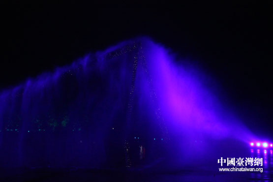 霧森以特有的高科技技術(shù)為《印象西湖》再造了“西湖雨霧”,配合五彩的燈光與西湖的美景,它的每一次出現(xiàn)都引起觀眾自發(fā)地熱烈鼓掌。(中國臺灣網(wǎng)發(fā) 莫高泉 攝)